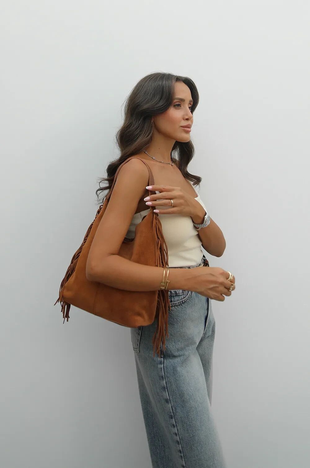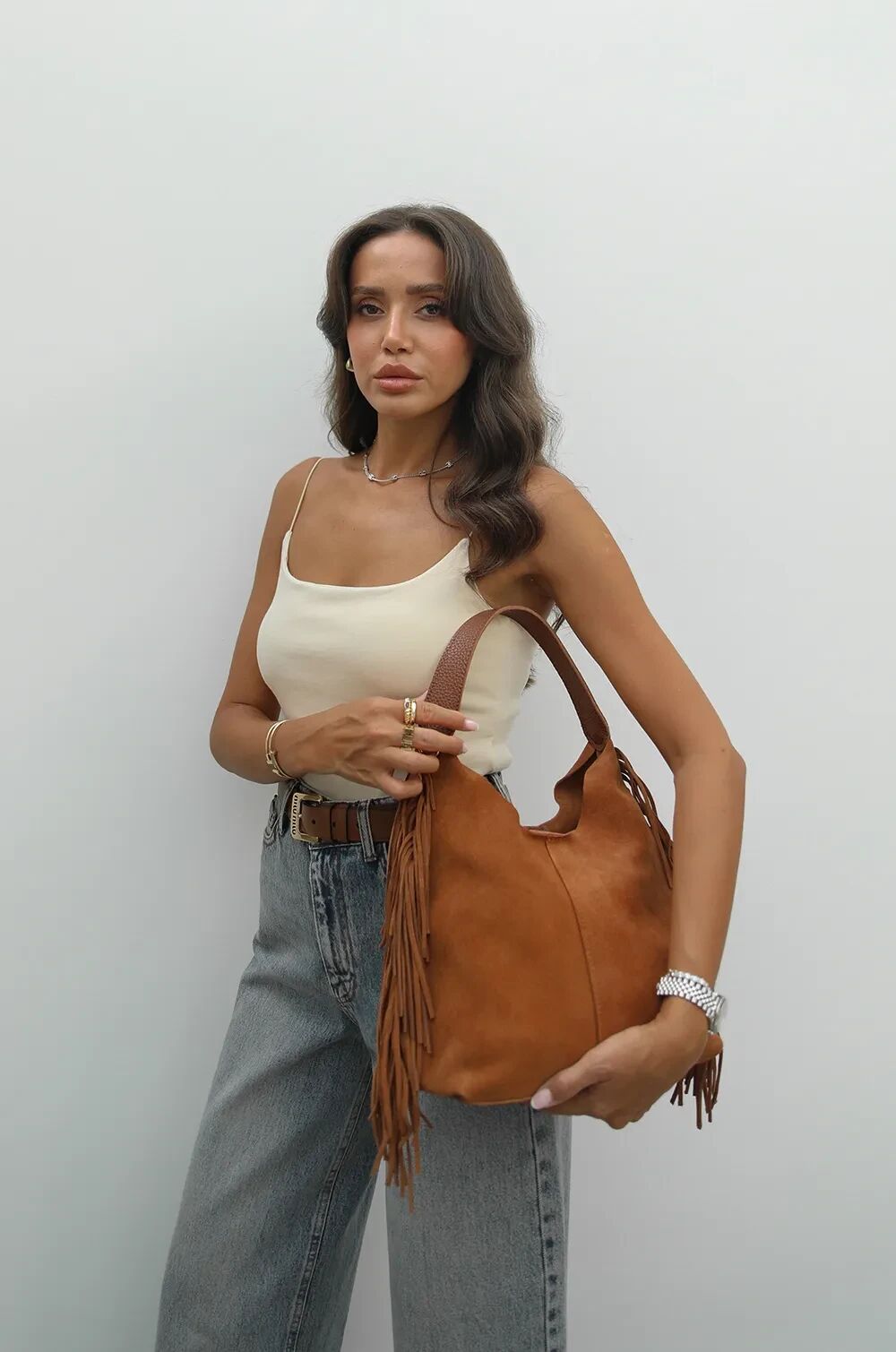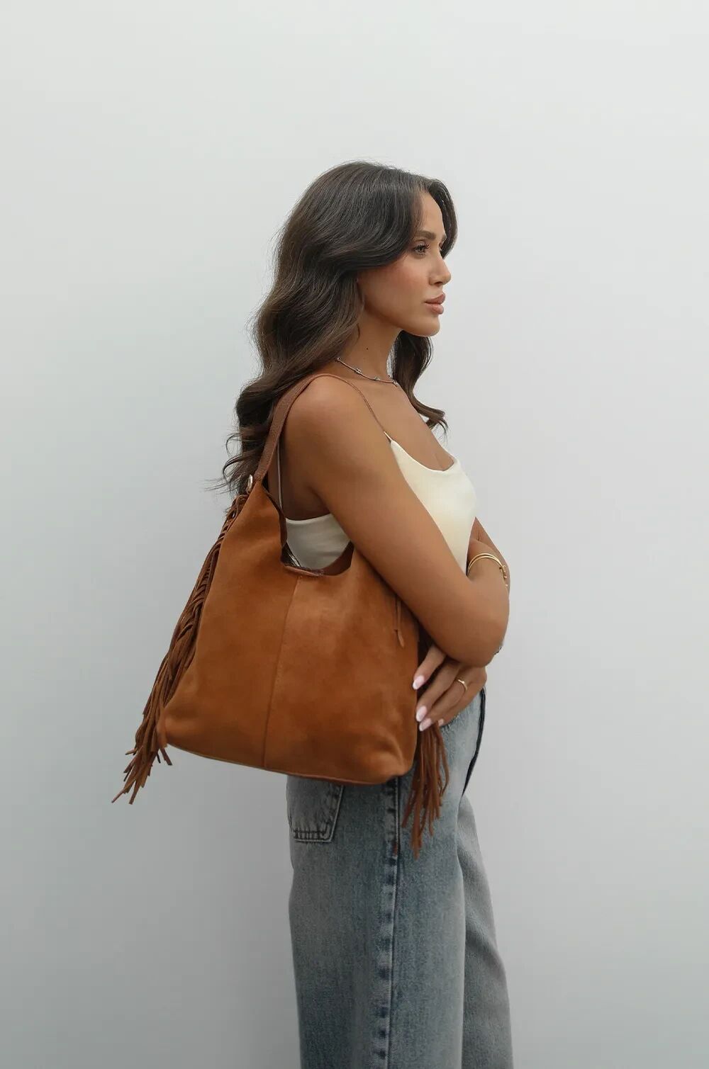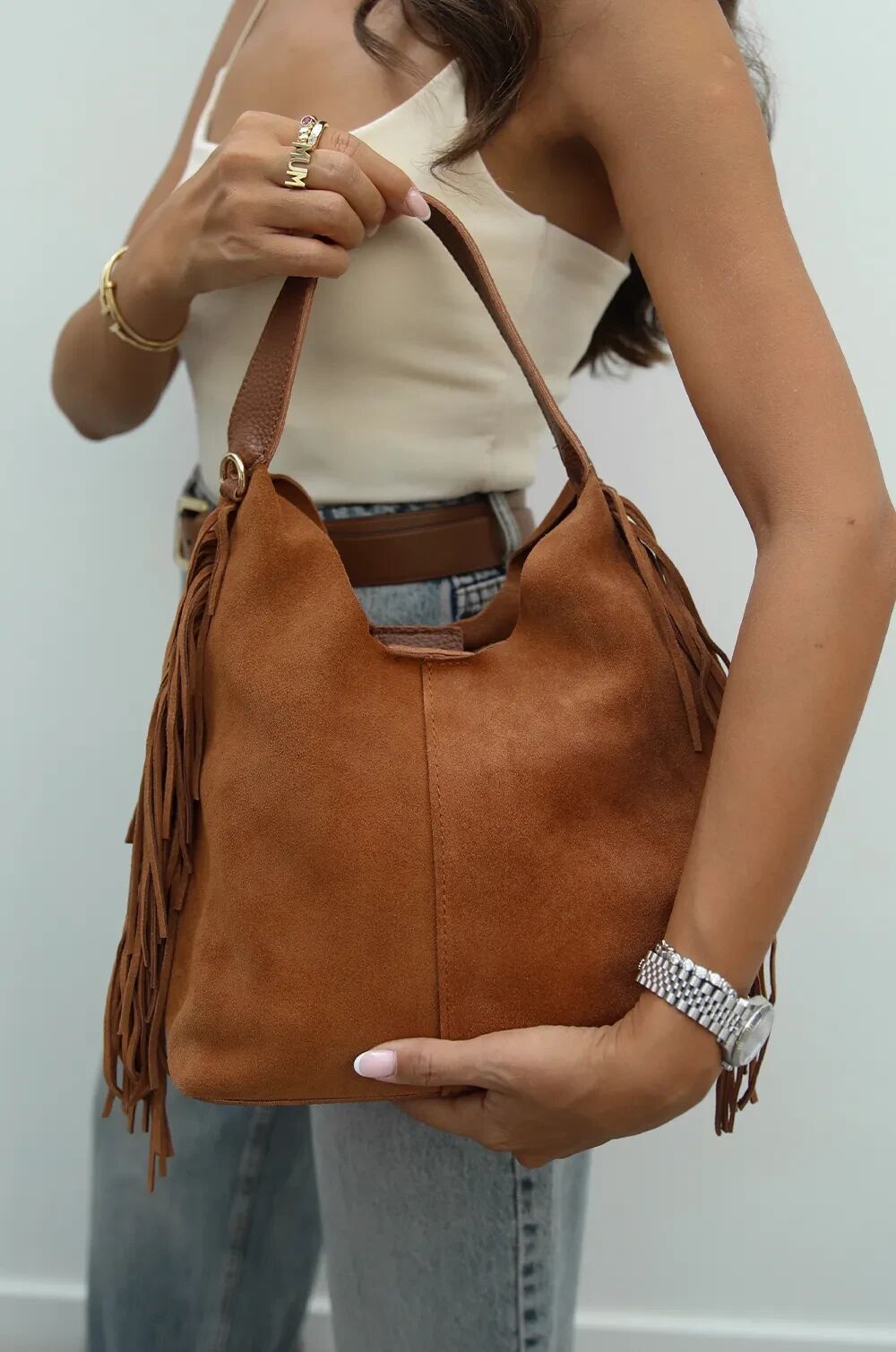 Andrea Hakiki Süet El ve Omuz Çantası Taba