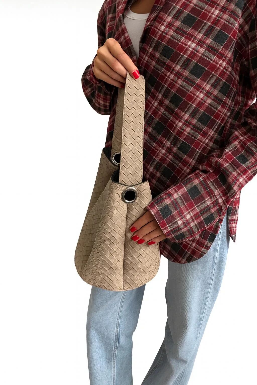 Zarif örgü dokusu sayesinde çanta, ilk bakışta kaliteli ve şık bir duruş sergiler.