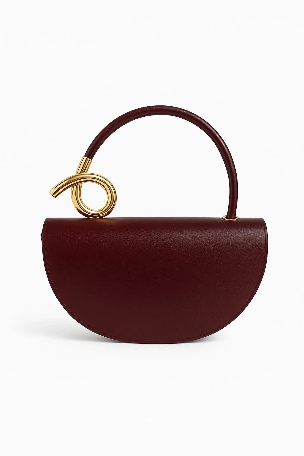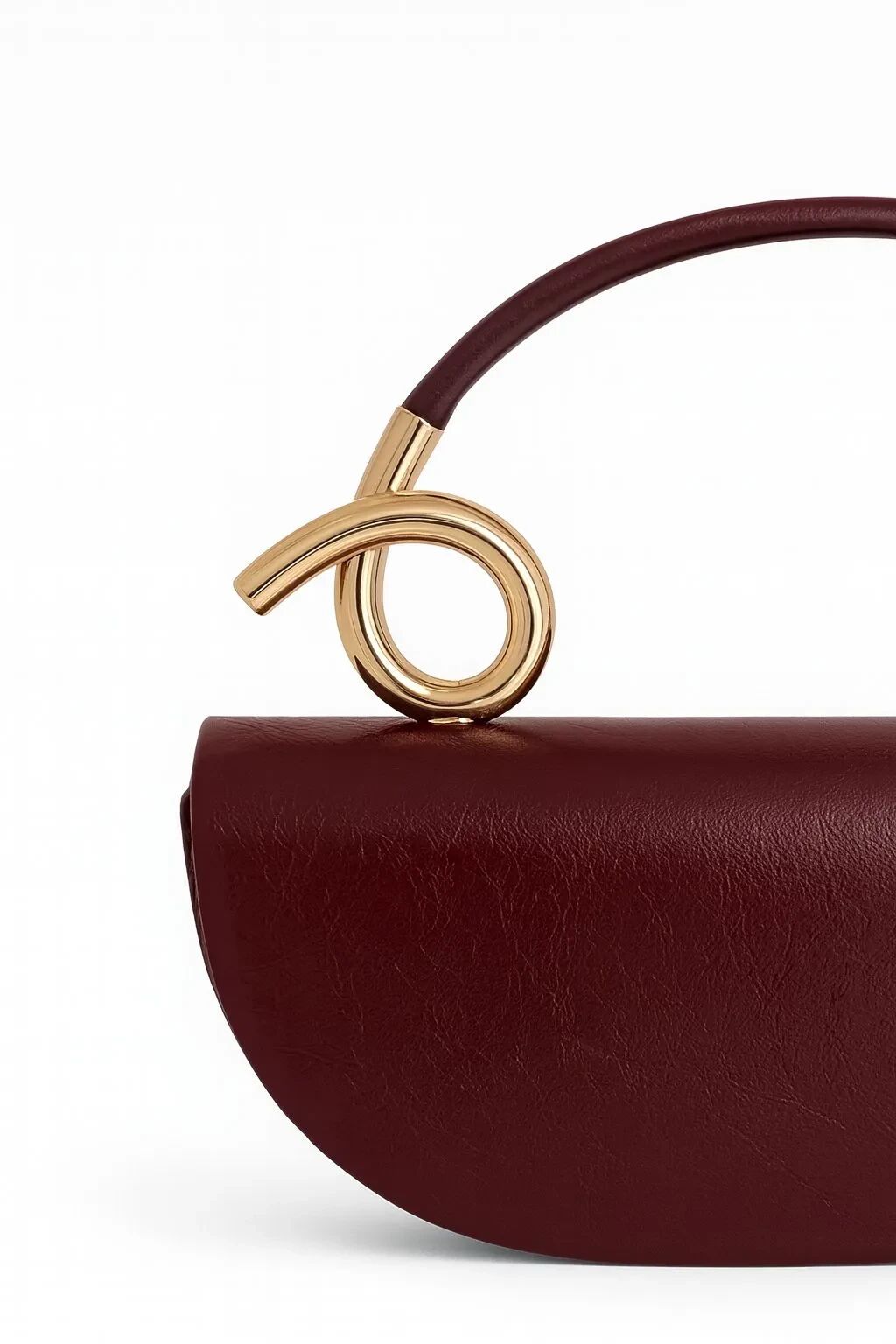 Modern yarım ay formu ve özgün metal sap detayıyla her kombine sofistike bir dokunuş katar.