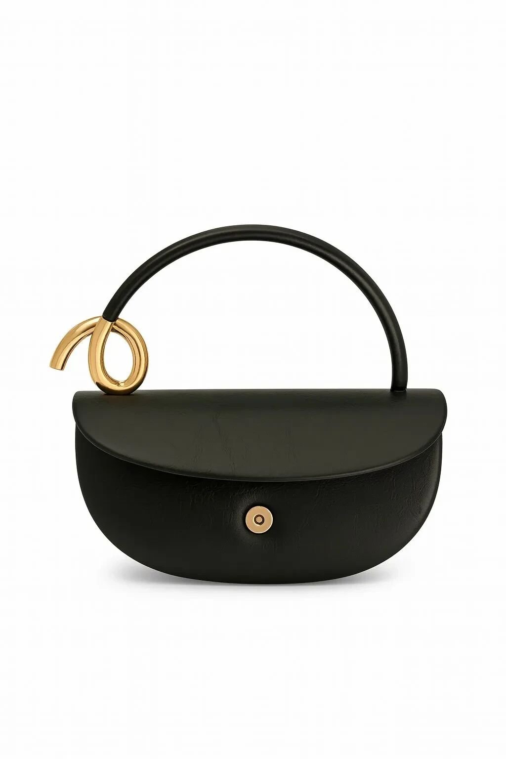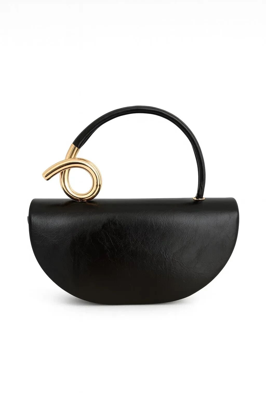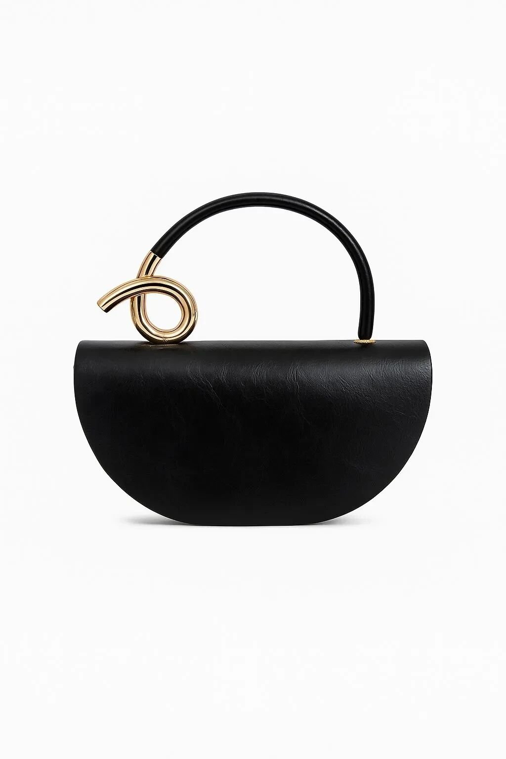 Modern yarım ay formu ve özgün metal sap detayıyla her kombine sofistike bir dokunuş katar.