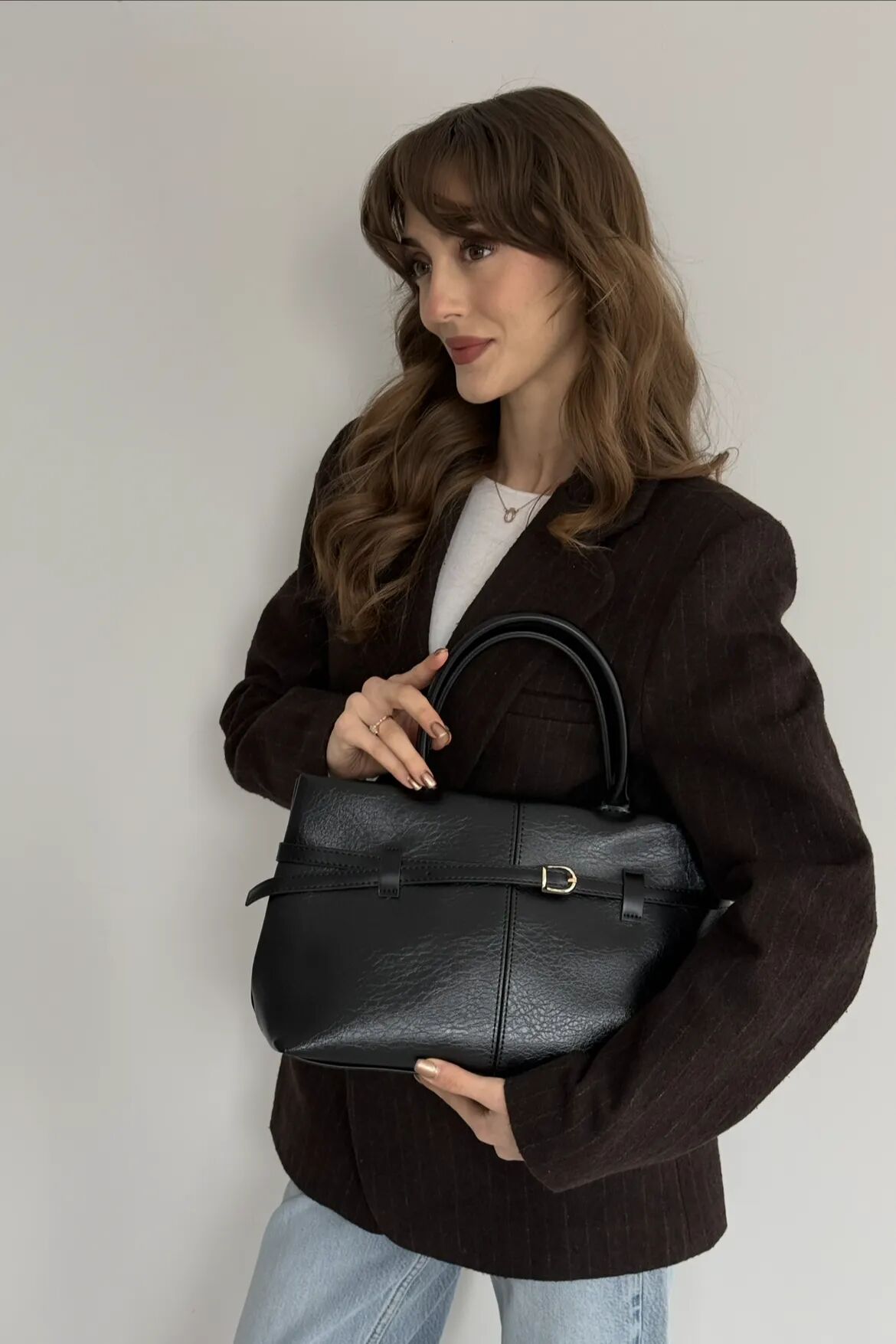 Elinizdeki çanta, sade şıklığı güçlü bir duruşla buluşturarak her kombine zahmetsizce uyum sağlar.