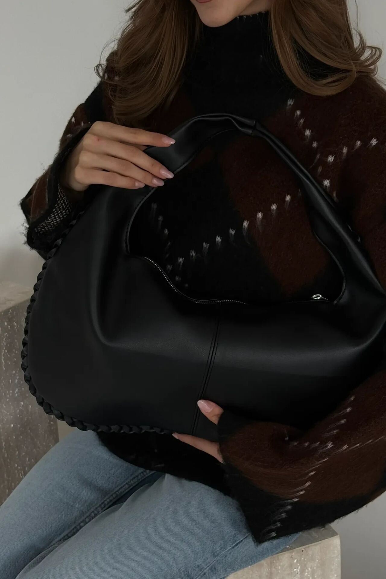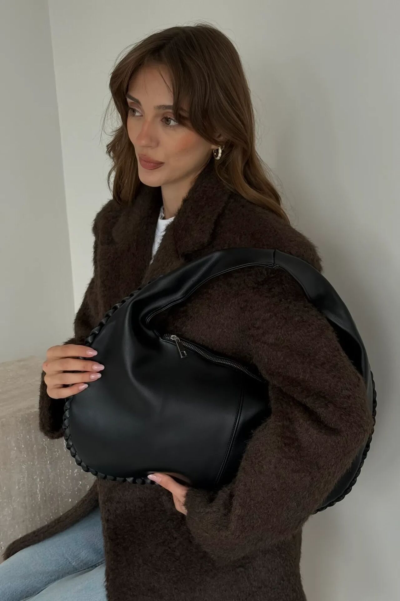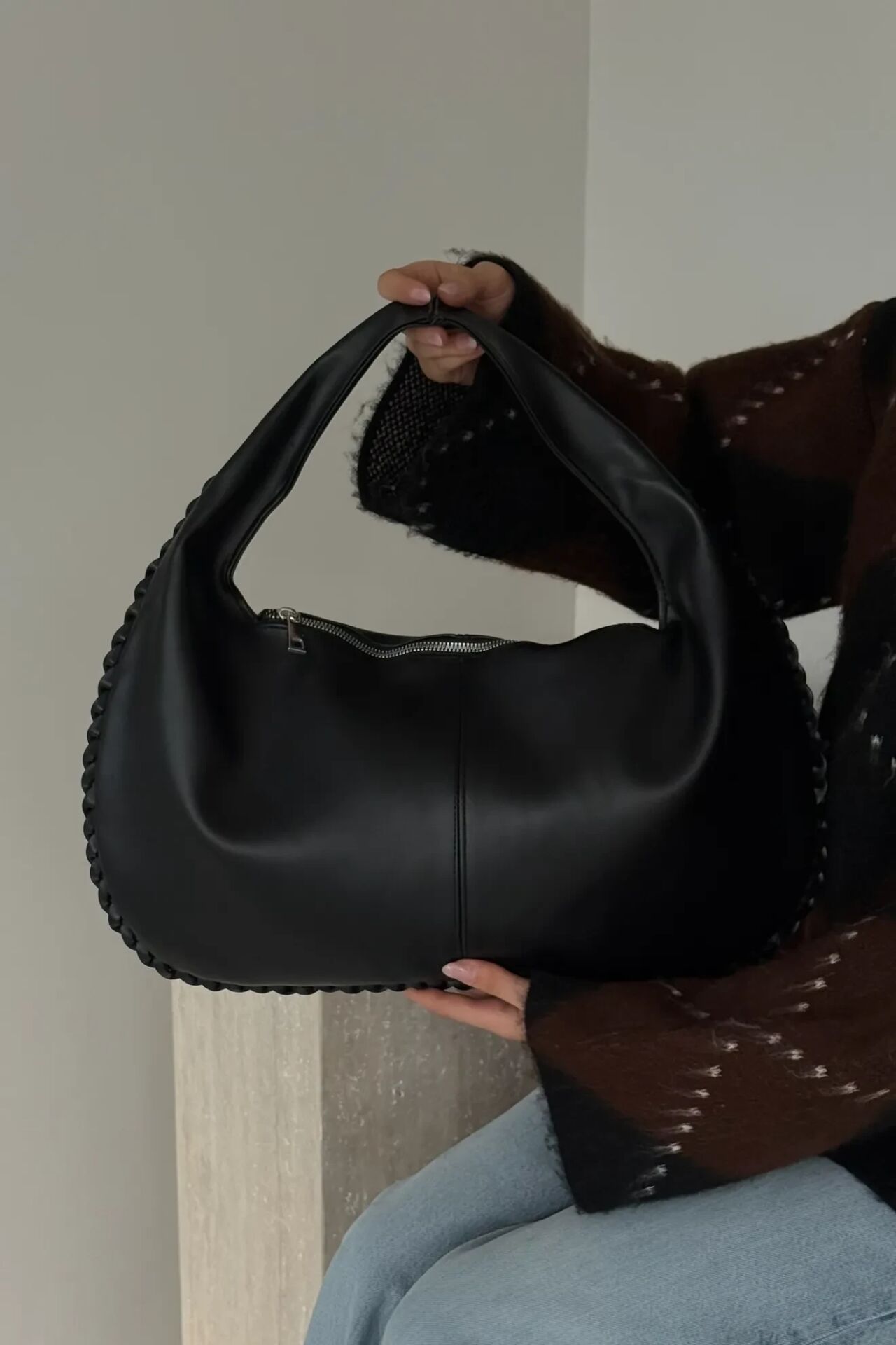 Kavisli formu, çantaya hem zarafet hem de dikkat çekici bir duruş kazandırır.