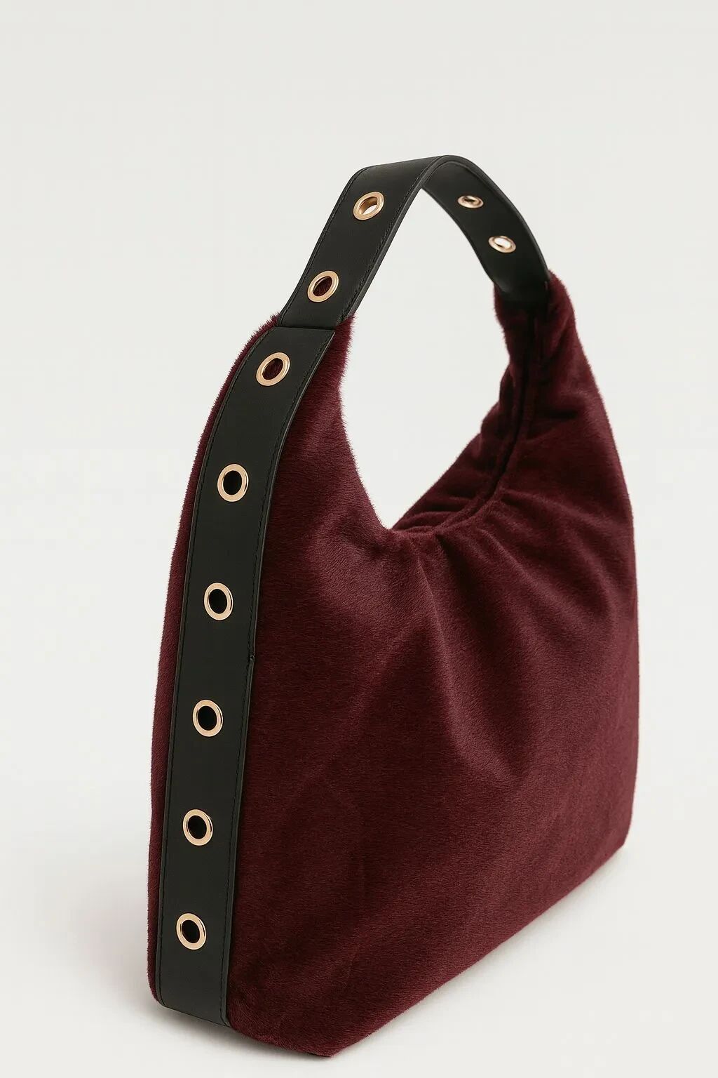 Lily Peluş Dokulu El ve Omuz Çantası Bordo