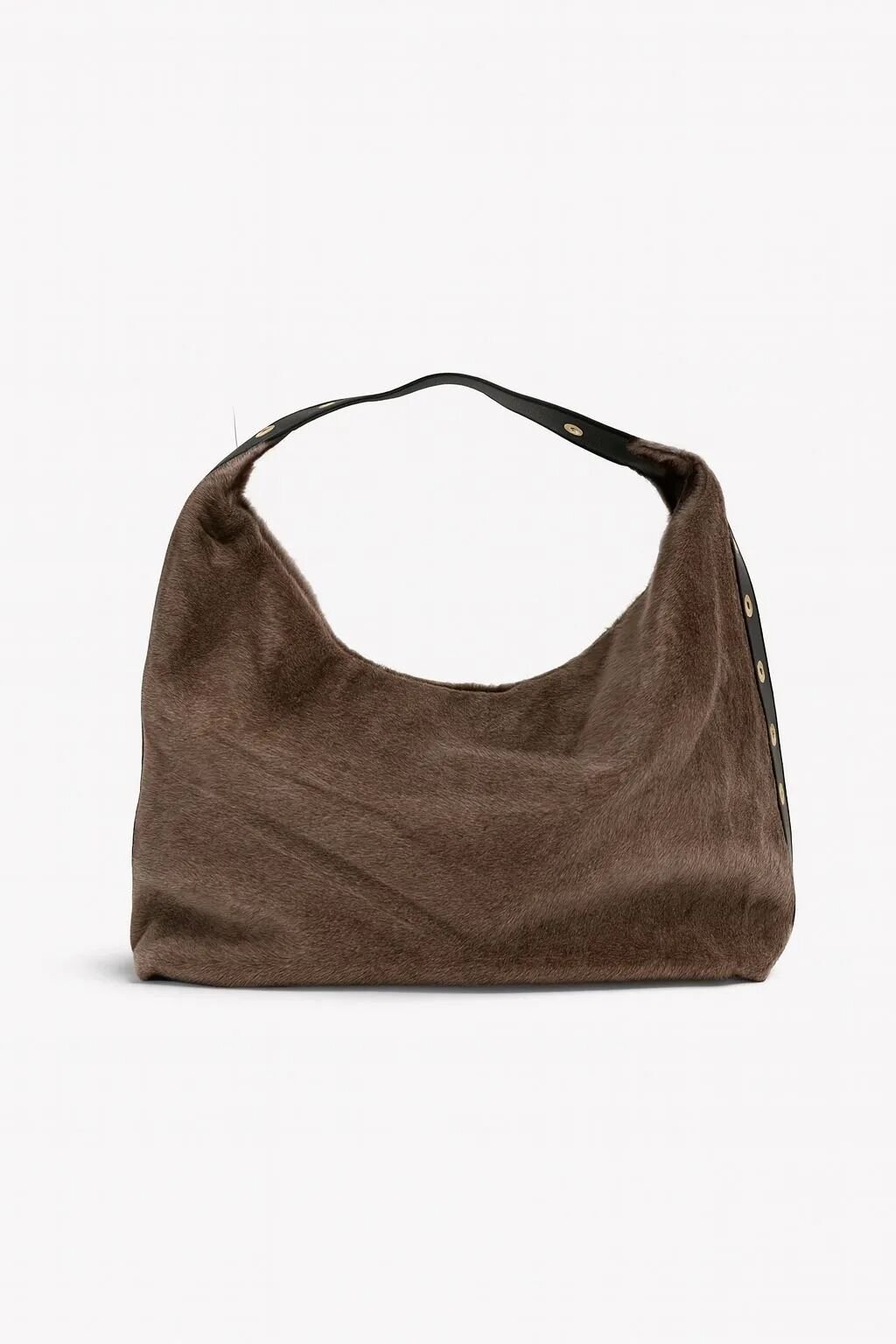 Lily Peluş Dokulu El ve Omuz Çantası Vizon
