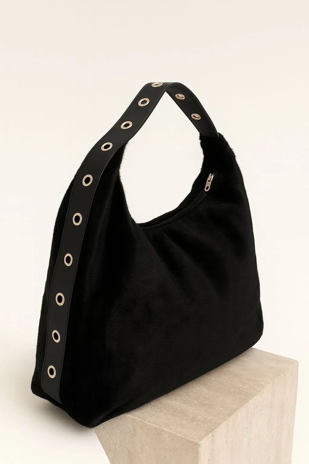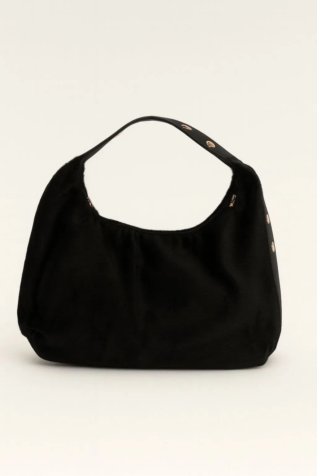 Lily Peluş Dokulu El ve Omuz Çantası Siyah