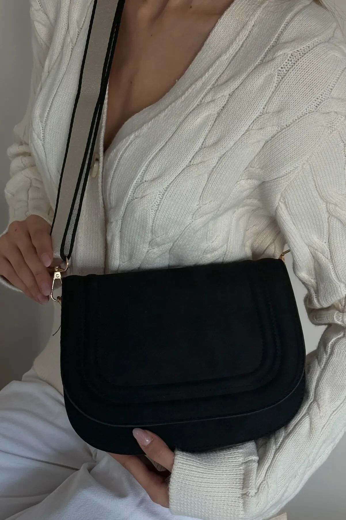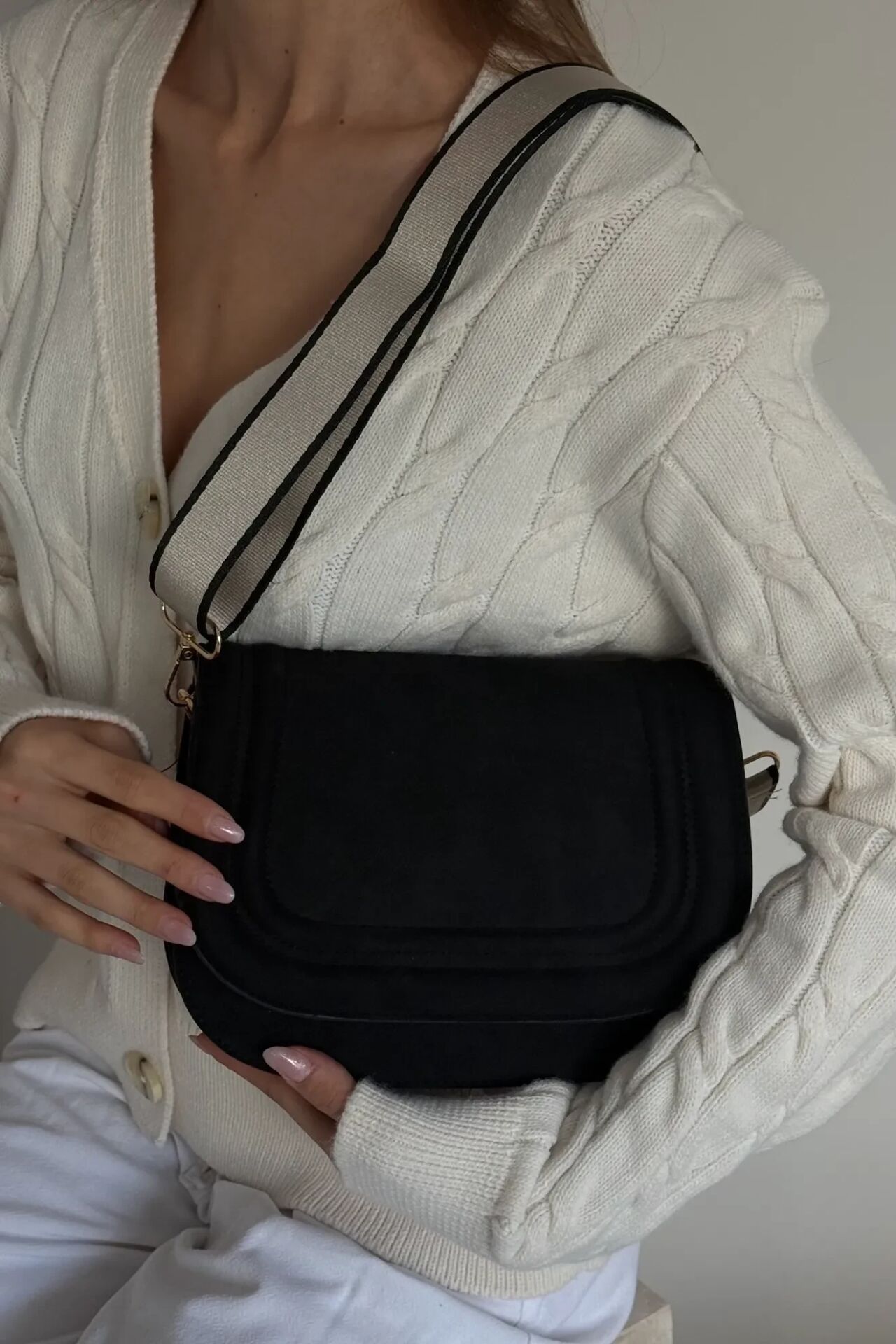 Kaliteli süet dokusu, çantaya zarif ve modern bir duruş kazandırır.