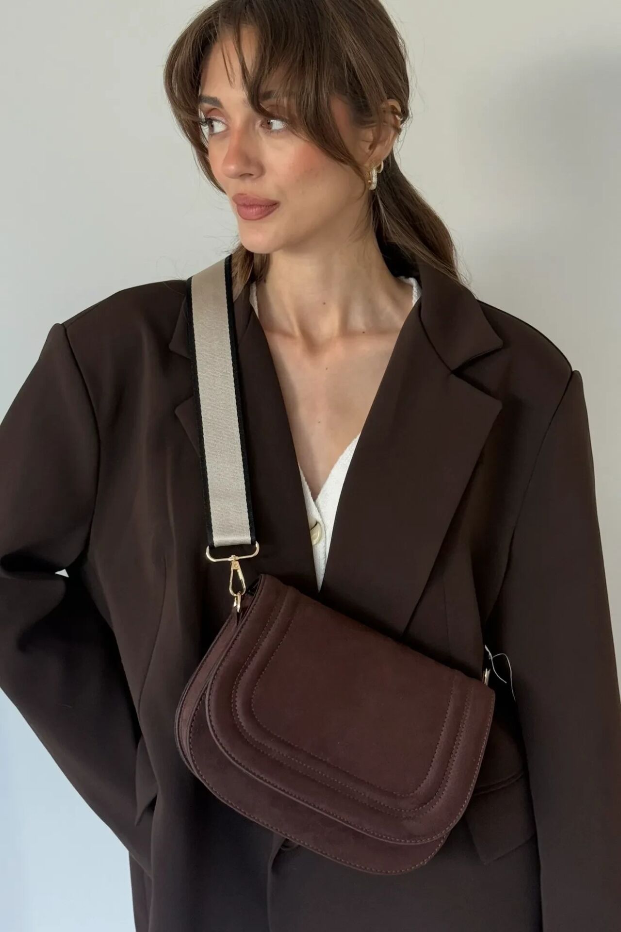 Kaliteli süet dokusu, çantaya zarif ve modern bir duruş kazandırır.