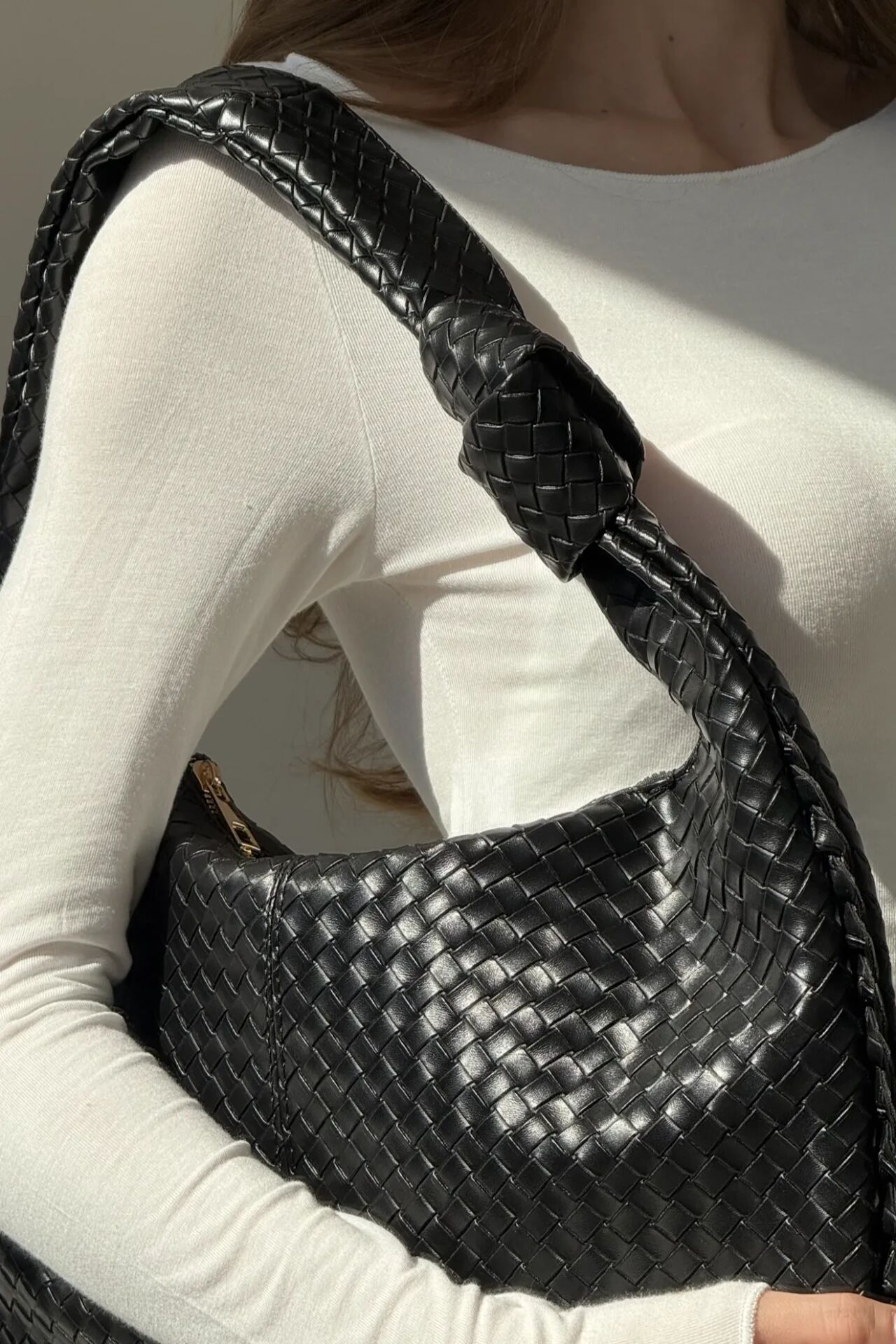Zarafet ve şıklığı bir arada sunan çantamız, örgü dokulu suni deri malzemesiyle modern bir görünüm kazanıyor.