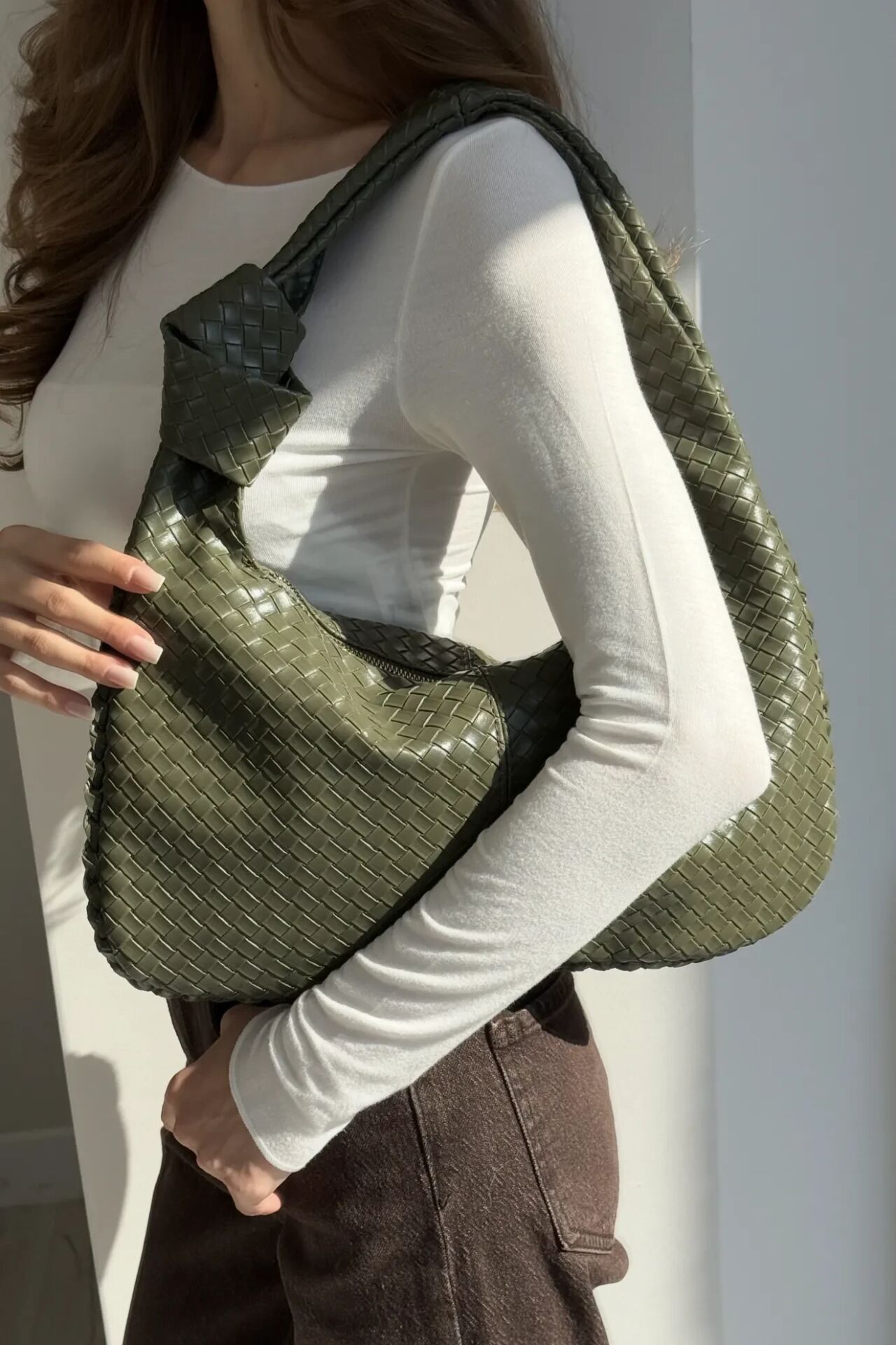 Zarafet ve şıklığı bir arada sunan çantamız, örgü dokulu suni deri malzemesiyle modern bir görünüm kazanıyor.
