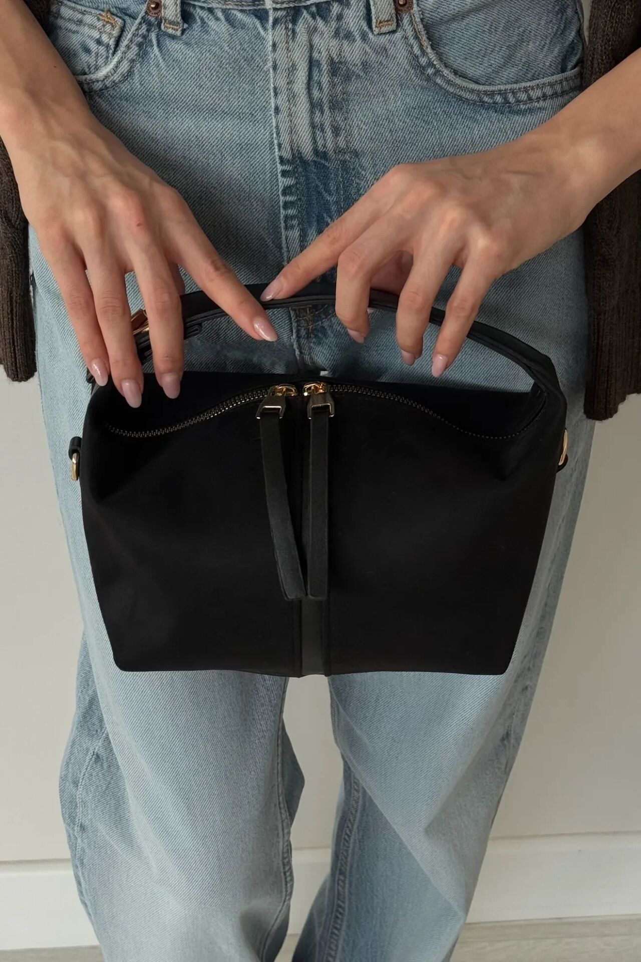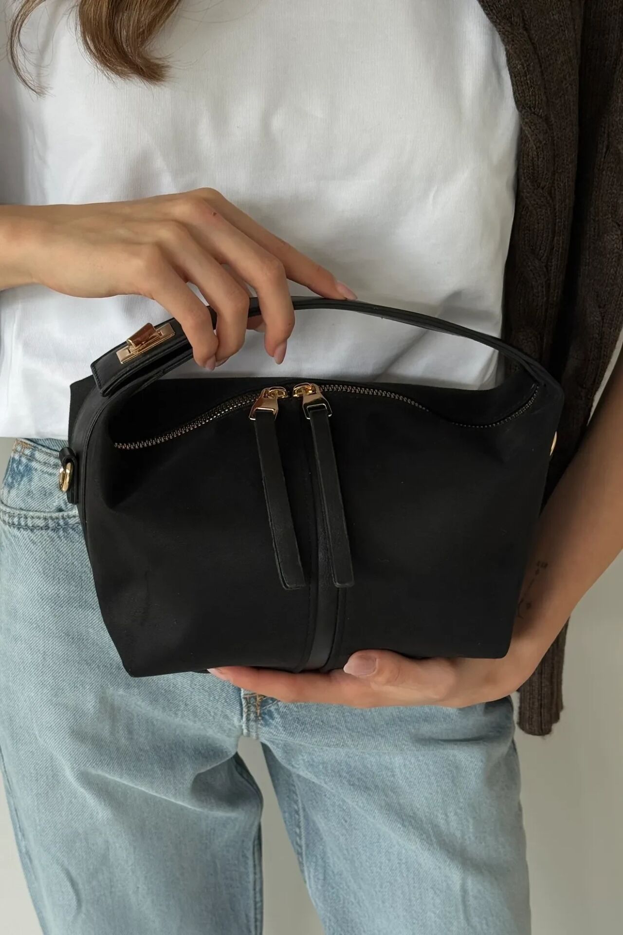 Nube Süet El ve Omuz Çantası Siyah