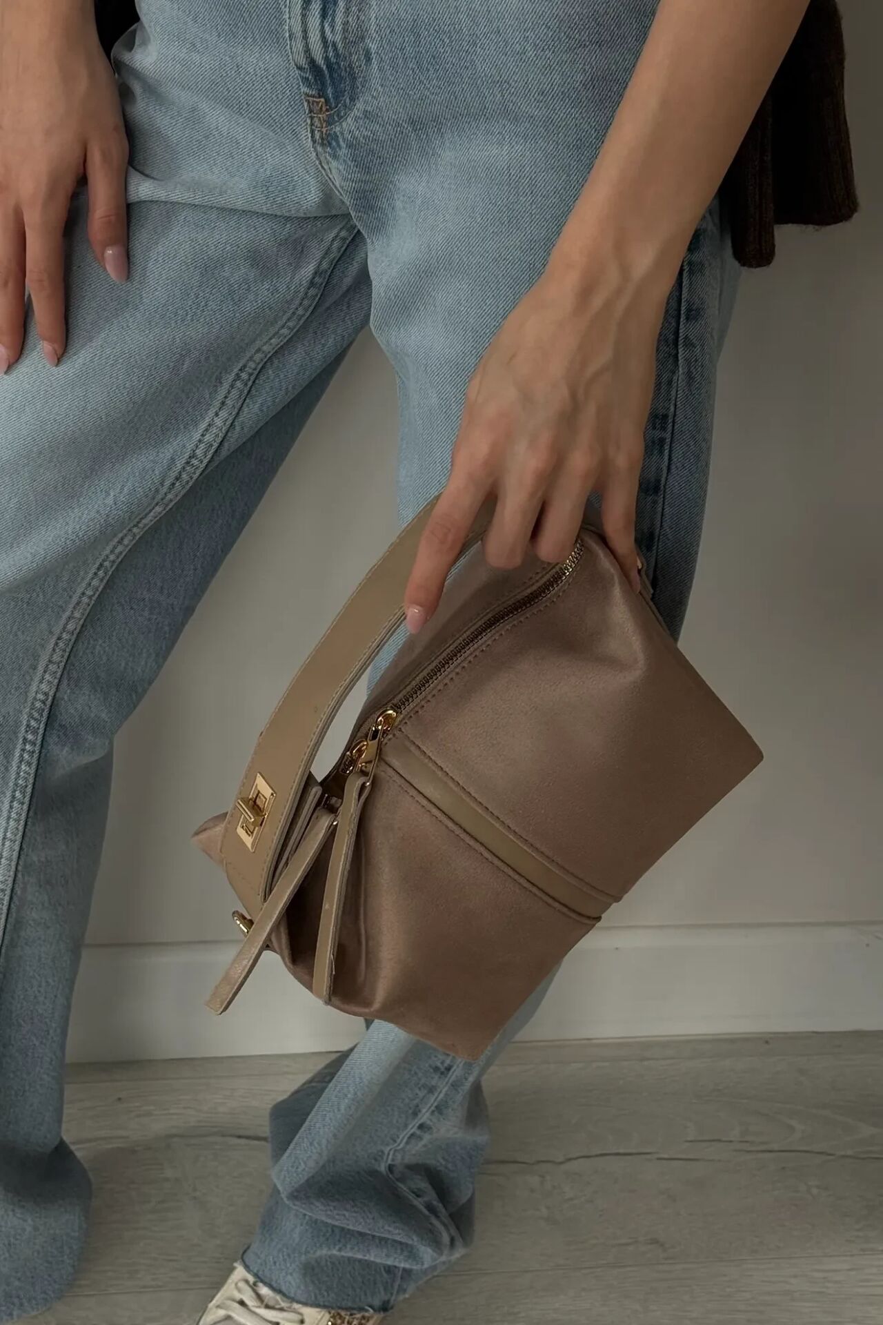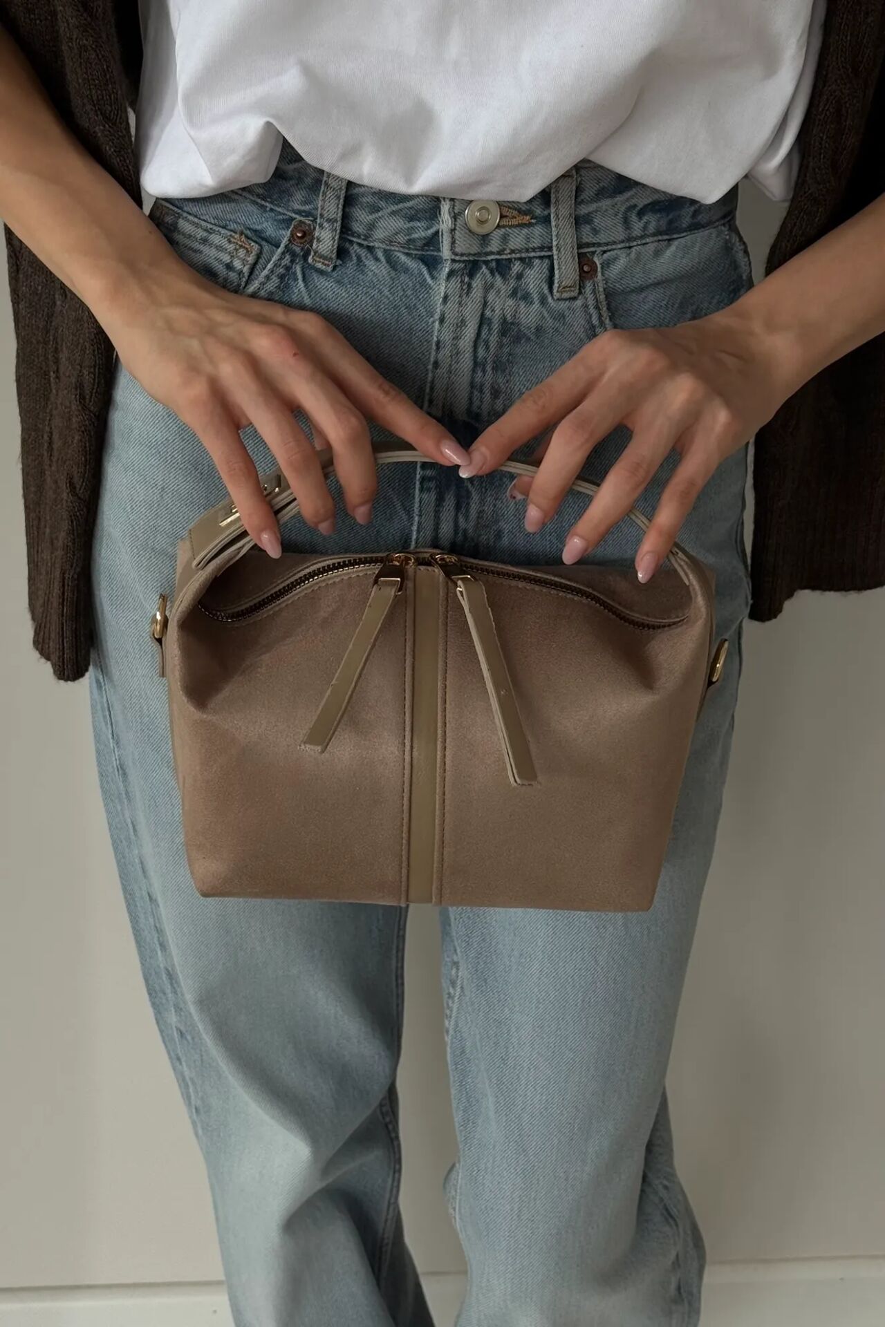 Yumuşak dokulu dış yüzeyi ve altın rengi detayları modern bir görünüm sunuyor.En :24 Boy: 14