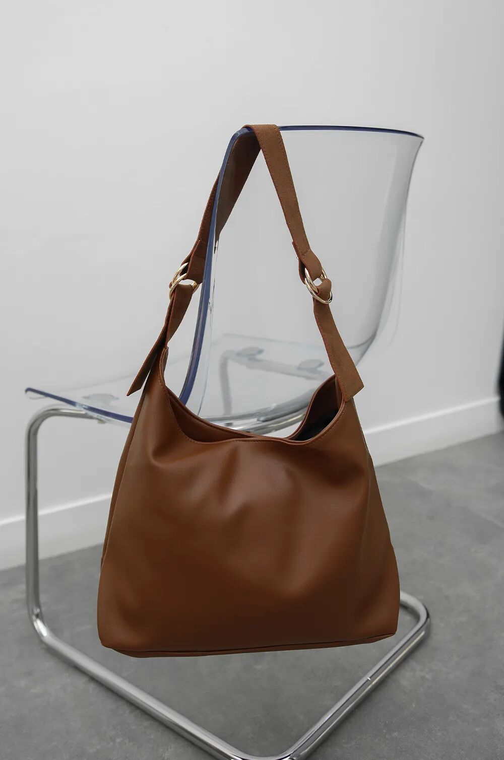 Bu kahverengi shopper çanta, modern görünümü ve geniş kullanım alanı ile günlük hayatın vazgeçilmez parçalarından biridir.
